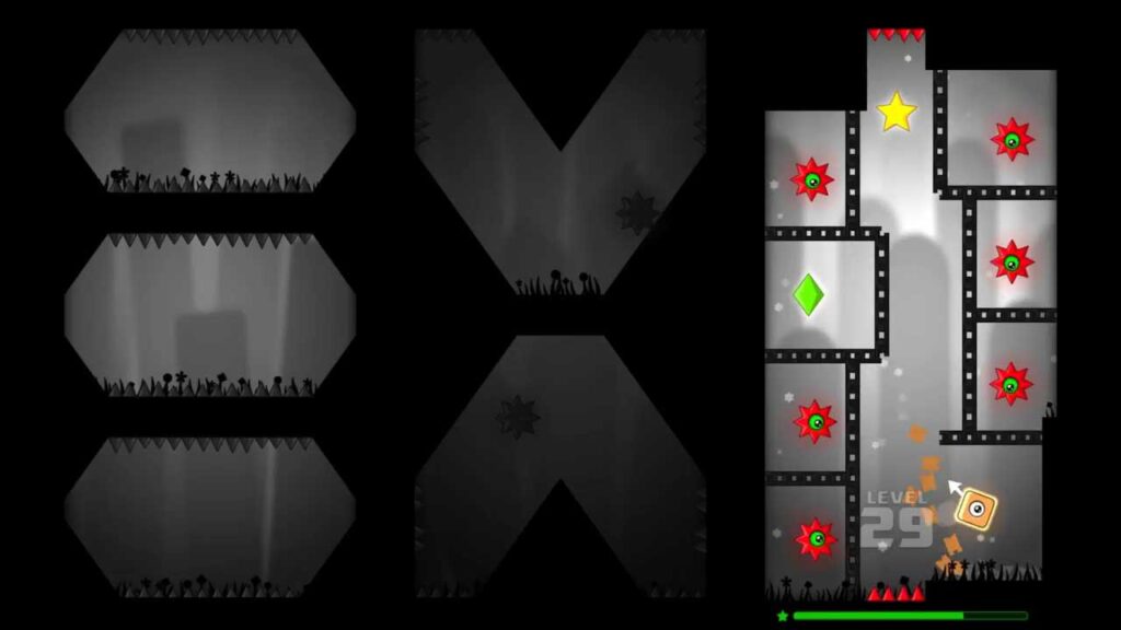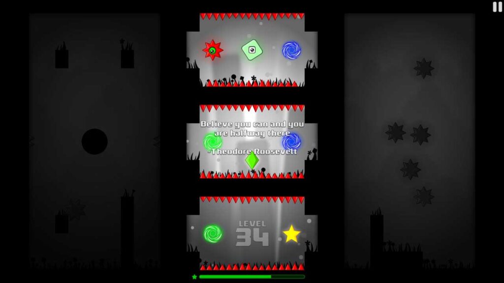 Cara utama adalah dengan membuat pergerakan kecil di seluruh pentas dan juga membuat lompatan pendek dan perlahan semasa bergerak, supaya anda tidak tiba-tiba mendapati diri anda jatuh di atas pancang. Terdapat banyak perangkap di sepanjang jalan yang akan menghalang anda daripada meneruskan perjalanan anda. Seperti yang saya katakan, mod cerita mempunyai satu set peringkat tertentu, yang mempunyai hanya 50 peringkat, yang dengan sedikit ketekunan anda boleh menyelesaikan dalam masa yang sesingkat mungkin.