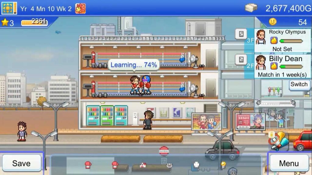 Permainan baharu daripada Kairosoft telah tiba, dan kali ini, kami membawakan anda “Boxing Gym Story”. Di gim tinju, anda terus membina gim anda dan, melalui kejohanan, menarik lebih ramai pemain yang bercita-cita tinggi, dengan itu merekrut mereka ke dalam pasukan, menemui lebih ramai pemain berbakat dan memperoleh lebih banyak ganjaran untuk gim. Berbanding dengan simulasi perniagaan lain, permainan ini lebih menumpukan pada pembangunan pemain daripada sekadar mengumpul makanan dan membunuh raksasa untuk mendapatkan wang. Pada masa yang sama, pelbagai jenis kejohanan turut diberi keutamaan. Memupuk pemain peringkat tinggi adalah matlamat utama permainan ini.
