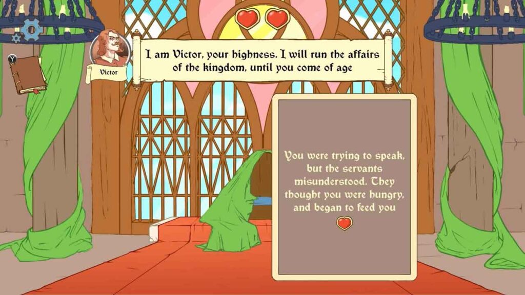 Kerana anda tidak boleh melakukan tugas anda seorang diri, anda mesti mencari teman setia. Jika tidak, adalah mustahil untuk bertahan dalam dunia yang berbahaya dan penuh konspirasi. Visual yang menyeronokkan dan cerita menarik permainan ini akan membolehkan anda mengalihkan fikiran anda daripada semua pemikiran negatif dan melibatkan diri dalam dunia zaman pertengahan seperti membaca buku, sambil menikmati ketenangan dan keseronokan. Ada watak bernama Victor yang menjalankan pemerintahan sehingga dewasa. Pilihan yang anda buat akan menentukan sama ada anda menghadapi prospek yang baik atau pengakhiran yang tiba-tiba dan membawa maut, dan semuanya terpulang kepada anda.