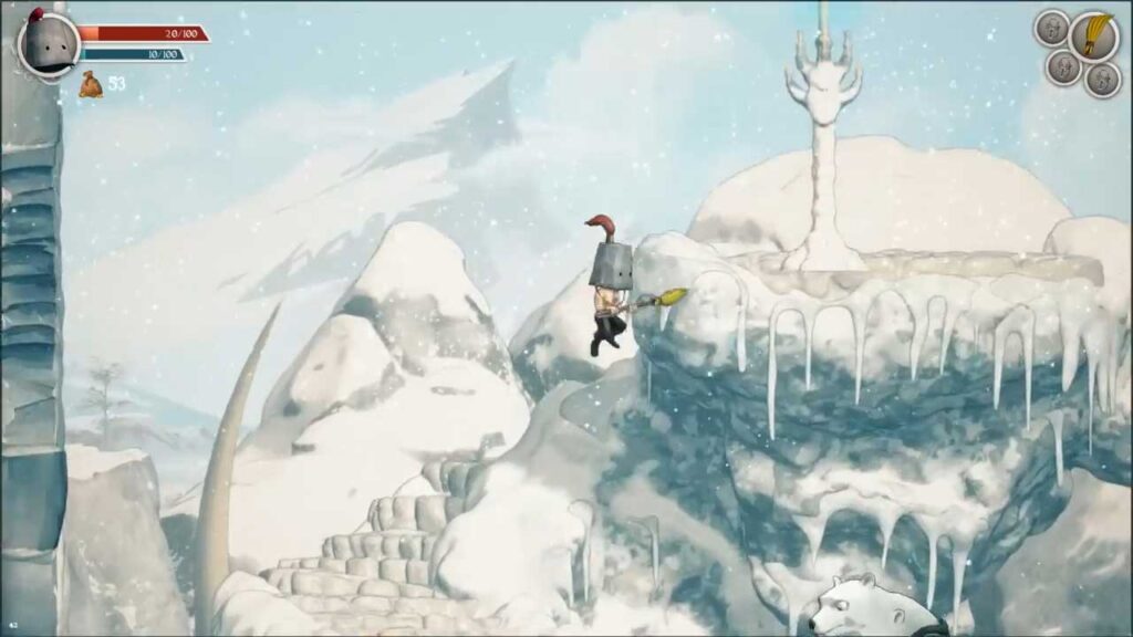 Memandangkan Clunky Hero menggunakan struktur Metroidvania dalam permainannya, musuh muncul setiap kali anda meninggalkan kawasan, yang kadangkala boleh menjengkelkan, terutamanya memandangkan terdapat hanya beberapa jenis musuh tertentu. . Saya rasa mereka boleh dimulakan semula selepas menyimpan seperti kebanyakan permainan video lain. Pertempuran kelihatan asas dan tidak mencabar untuk permainan genre ini. Jika kita terluka, kita boleh mencari atau membeli barang penyembuhan yang memudahkan segalanya. Tiada strategi yang terlibat dan pergaduhan bos pun mudah dikalahkan, walaupun mereka tidak menunjukkan sebarang bar kesihatan pada masa ini, jadi kami tertanya-tanya berapa banyak pukulan yang perlu mereka potong.