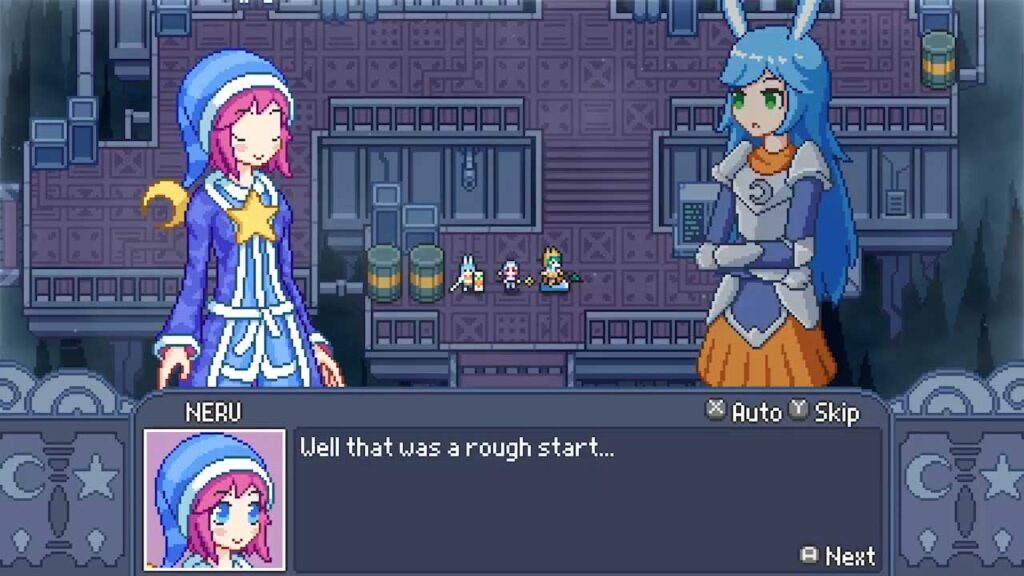 Pada mulanya, saya mempunyai keraguan berdasarkan gaya seni dan tema permainan ini. Saya separuh menjangkakan jalan cerita yang menjengkelkan yang menganggapnya terlalu serius, tetapi saya mengambilnya kerana ia menjanjikan permainan strategi era gaya GBA atau “Game Boy Advance”. Saya tersilap dalam pertimbangan saya kerana cerita genre ini kebanyakannya parodi, dialog membantu permainan melontarkan beberapa detik lucu yang sah.