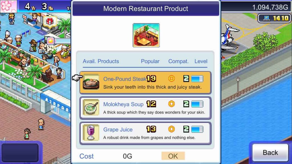 Permainan Jumbo Airport Story ialah satu lagi tajuk syarikat Kairosoft yang dibuat dengan baik dan sangat menghiburkan, yang memperkenalkan anda kepada aspek pengurusan dan kesukaran laluan pengurus lapangan terbang. Sangat menarik untuk melihat bagaimana orang ramai menjalankan perniagaan harian mereka di lapangan terbang sambil bergegas untuk menaiki kapal terbang mereka. Grafik artistik gaya piksel permainan adalah contoh yang baik untuk ini, dan dalam latar belakang persekitaran permainan yang pelbagai, anda sentiasa melihat aliran berterusan aktiviti harian orang yang pergi ke lapangan terbang. Saya mengesyorkan pengalaman permainan ini kepada semua yang berminat dalam gaya pengurusan dan simulator, kerana mereka pasti akan berseronok dengannya.
