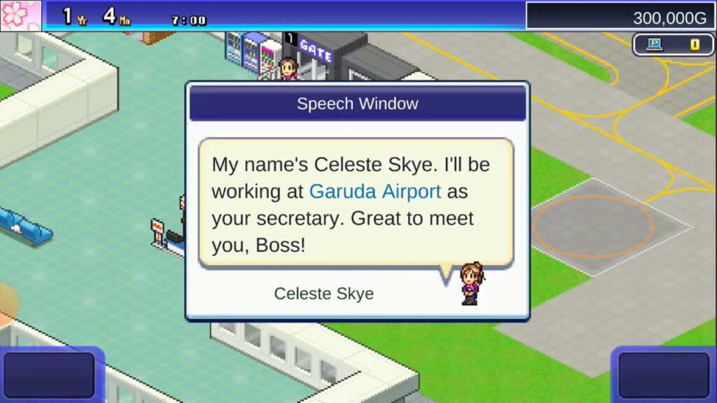 Dalam bahagian permainan permainan ini, pembantu bernama Celeste Skye membimbing anda melalui permainan dan memberi anda penjelasan yang diperlukan tentang mekanisme tersebut. Dalam langkah pertama, anda perlu mencipta kawasan letak kereta untuk lapangan terbang anda supaya semua pesawat yang mendarat di lapangan terbang anda boleh memuatkan dan menyimpan produk yang berbeza. Semasa proses ini berlaku, juruterbang perlu berehat dan meluangkan sedikit masa berseronok, jadi Celeste mencadangkan membina tempat seperti bar snek mungkin membantu memastikan juruterbang terhibur semasa mereka menunggu. . Dari masa ke masa, anda mencipta bangunan lain seperti kedai buku dan pelbagai restoran, dan sudah tentu, anda melakukannya dengan membelanjakan jumlah mata wang biasa dalam permainan.