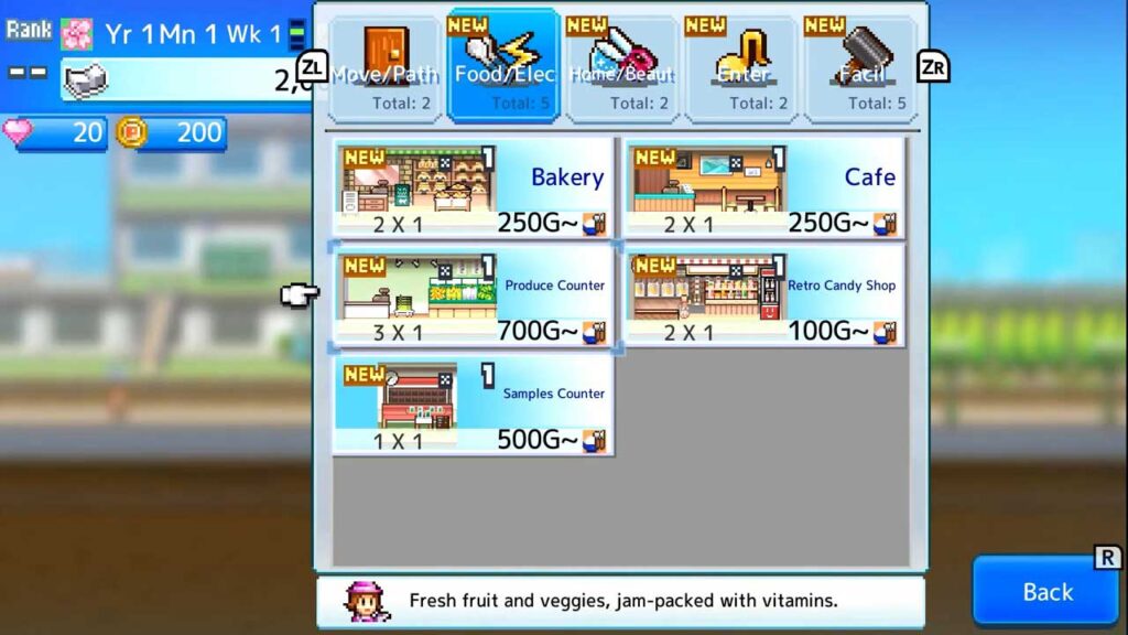 Malah, permainan ini mempunyai mekanik keserasian kedai yang membolehkan kedai yang berbeza mempunyai reka letak unik mereka sendiri. Contohnya, menggabungkan kafe dan kedai roti akan mengukuhkan kedua-dua hartanah dan menjadikannya lebih menarik kepada pelanggan. Sudah tentu, pesaing tidak dapat dielakkan dan ini adalah apabila anda akan mengalami keamatan perang perniagaan! (Ini semua tentang siapa yang paling banyak menuntut.)