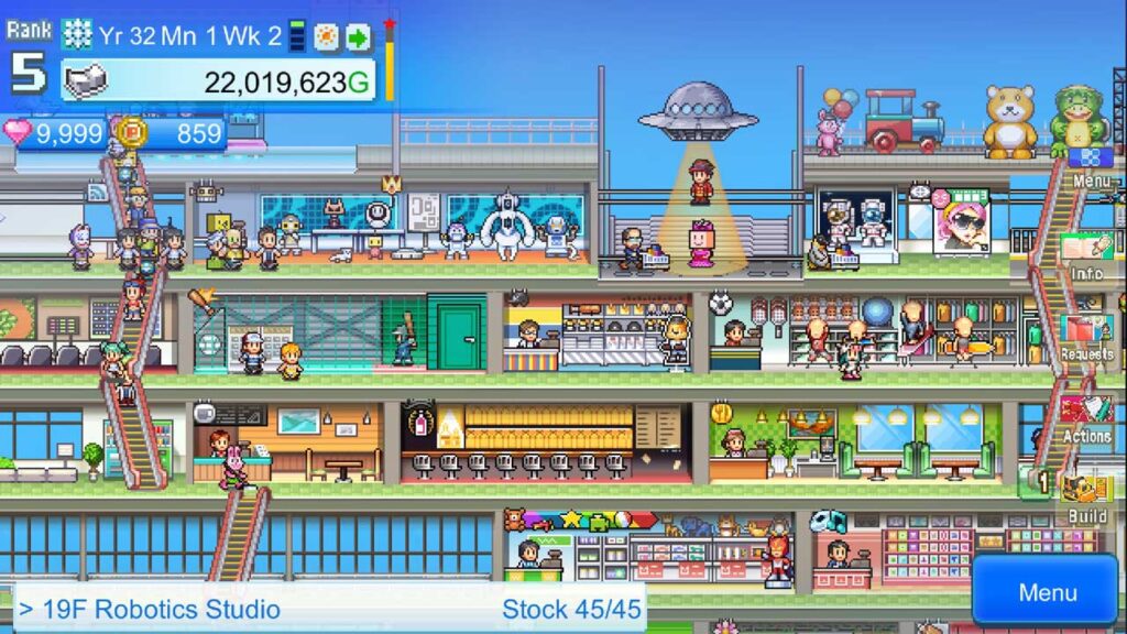 Mega Mall Story 2 ialah sekuel hebat dan contoh utama tumpuan Kairosoft pada pengurusan perniagaan pakar. Di sini, kami perlahan-lahan akan merealisasikan impian perniagaan kami di jalan-jalan kosong ini. Ia adalah permainan pengurusan pusat membeli-belah yang kaya dan penuh ciri di mana kali ini, anda memainkan peranan sebagai pemilik pusat membeli-belah yang besar, membinanya dari cangkang kosong, kedai demi kedai, dan mengurusnya melalui pajakan dan operasi, akhirnya mengubahnya daripada pusat membeli-belah kecil tanpa bintang kepada pusat beli-belah lima bintang yang legenda.