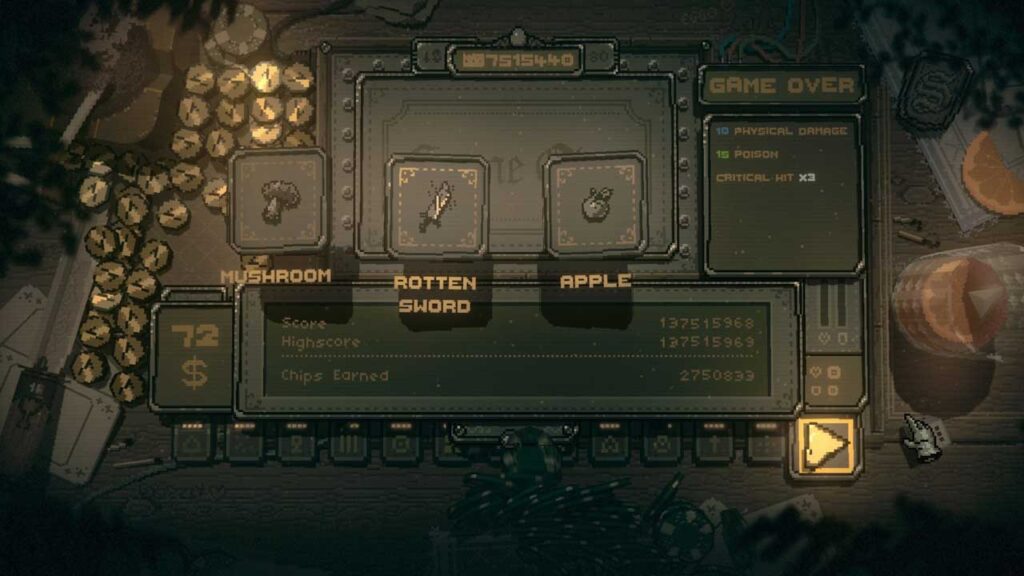Gabungan RNG yang boleh dilihat dengan pengaruh pemain terhadap kemungkinan dilaksanakan dengan baik. Permainan ini mencapai keseimbangan nasib dan strategi yang memuaskan yang membuatkan saya kembali untuk mencuba pendekatan baharu. Ia tidak mempunyai kedalaman atau jangka hayat roguelite yang lebih besar, tetapi ia tidak pernah mendakwa begitu. Sebaliknya, ia merangkumi skala yang dimaksudkan dan menunjukkan bahawa pengalaman yang lebih pendek tergolong dalam genre ini.