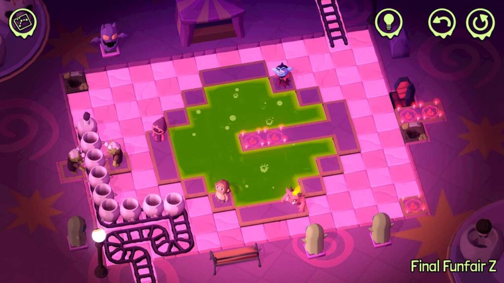Sebagai konduktor Kereta Api Hantu, anda menavigasi lebih 200 pentas mini yang direka bentuk dengan teliti dan bertanggungjawab untuk membawa pontianak, zombi dan “penumpang istimewa” lain ke destinasi mereka dengan tepat. Apa yang kelihatan seperti laluan dan pengaturan pengangkutan penumpang yang mudah sebenarnya agak rumit – setiap gerabak hanya boleh memuatkan seorang penumpang, dan susun atur laluan melarang persimpangan dengan tegas. Anda perlu merancang seperti pengedar utama dunia bawah tanah.