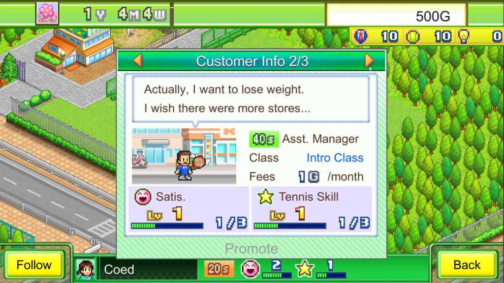 Pemain yang suka tenis dan simulator boleh mencubanya kerana pengalaman bermain permainan ini sangat unik. Sebagai studio yang telah menghasilkan berpuluh-puluh permainan, tiada permainan simulasi komersil dari mana-mana genre yang pembangun ini tidak boleh buat dan masih mengekalkan tahap keaslian dan kreativiti yang tinggi, sambil mengekalkan permainan klasik apabila Ia dialihkan daripada emulator mudah alih ke PC dan konsol baharu. Dalam permainan ini, kami memainkan peranan sebagai pengurus kelab tenis dan menyertai pelbagai kejohanan untuk meningkatkan prestij kami, sebaliknya, pemain kami bertindak sebagai jurulatih.