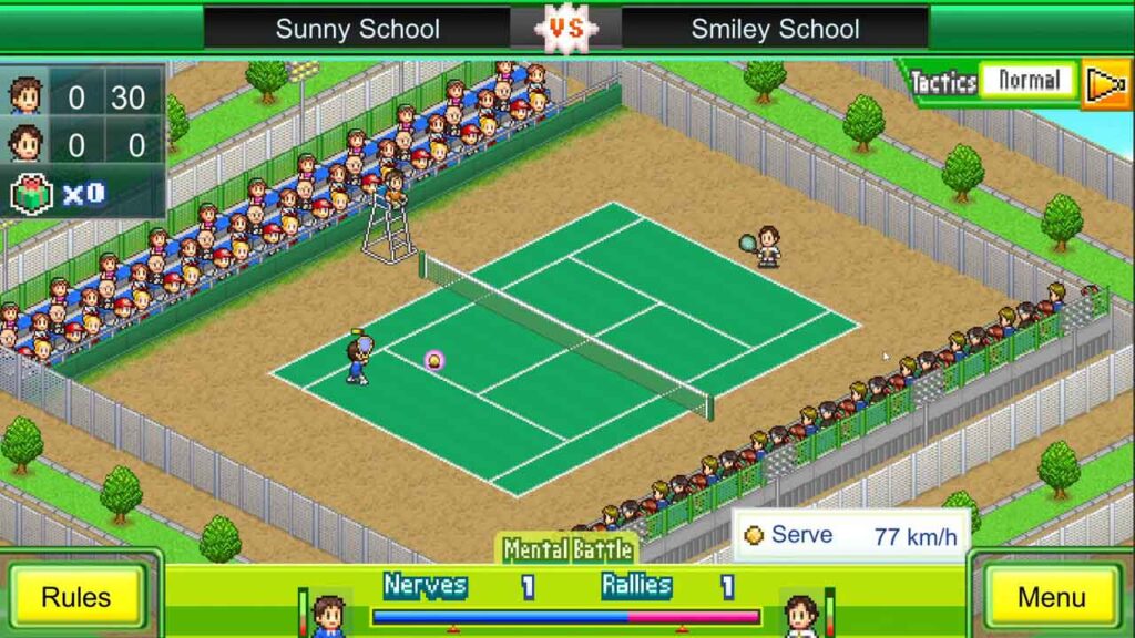 Mengenai grafik dan kesan visual permainan ini, boleh dikatakan bahawa reka bentuk watak adalah sangat berharga, dengan ciri yang dikenali dan ciri seperti chibi, minimalis, dengan pergerakan dan ekspresi asas, tetapi benar-benar selaras dengan keindahan retro permainan. mempunyai Walau bagaimanapun, saya berharap semasa perlawanan tenis, lebih banyak animasi orang ramai yang dinamik ditunjukkan untuk meningkatkan penglibatan dan keterlibatan, seperti menghidupkan penonton untuk menambah lapisan kemeriahan dan bukannya menonton mereka sebagai figura statik. Ciri ini boleh memberi impak yang besar terhadap kejayaan permainan.