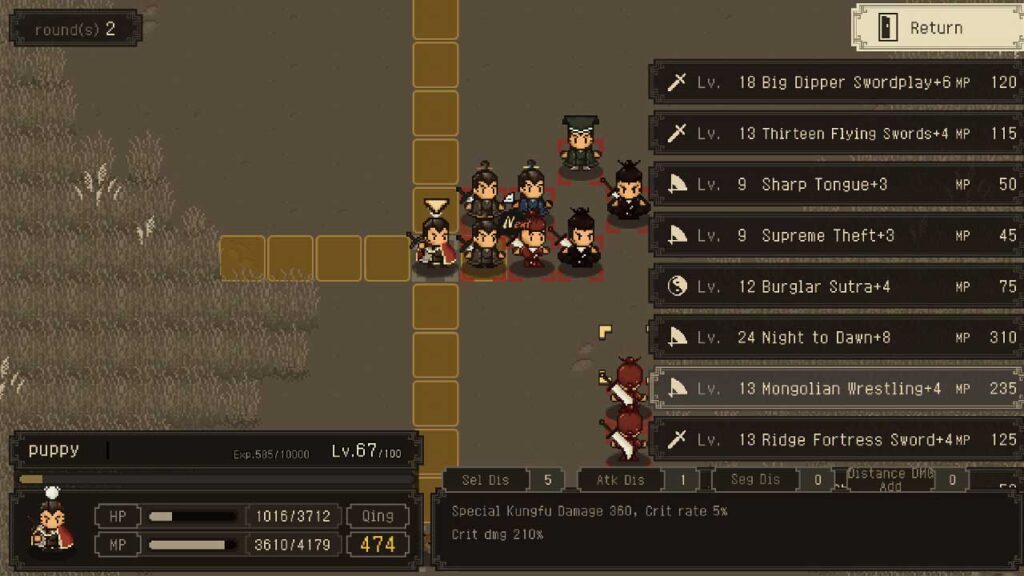 Bagi GUI, isu terbesar yang saya ada ialah hakikat bahawa semasa kemahiran, anda boleh mengklik pada jubin tanpa musuh dan ia akan kehilangan giliran anda, ditambah tiada cara untuk mengulangi tindakan yang sama seperti pintasan tidak mempunyai. Gaya piksel visual yang dipilih untuk permainan ini merupakan penghormatan yang bagus kepada tajuk Retro lama, sambil mengekalkan “rasa asli”. Ia hanya membuatkan orang berfikir ia “seronok” apabila mereka melihatnya. Jadi aspek seninya memang bagus. Perkara yang paling saya boleh katakan tentang muzik dan kesan bunyi ialah ia boleh digunakan tetapi hambar.