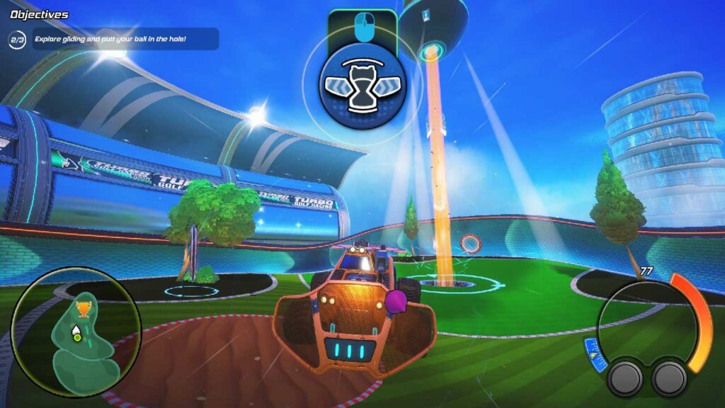 Permainan ini mempunyai rasa yang sama seperti Rocket League tetapi sedikit berbeza. Ia adalah perlumbaan ke lubang dan tidak kira berapa kali anda menyentuh bola. Walau bagaimanapun, jika anda adalah orang pertama yang memasukkan bola ke dalam lubang, anda mungkin orang yang mempunyai sentuhan paling sedikit pada bola! Orang pertama yang memasukkan bola ke dalam lubang adalah pemenang. Dalam mod ini, seperti Mario Kart, terdapat pelbagai PowerUp seperti roket, dll. Juga seperti golf klasik, pemain dengan pukulan paling sedikit menang.