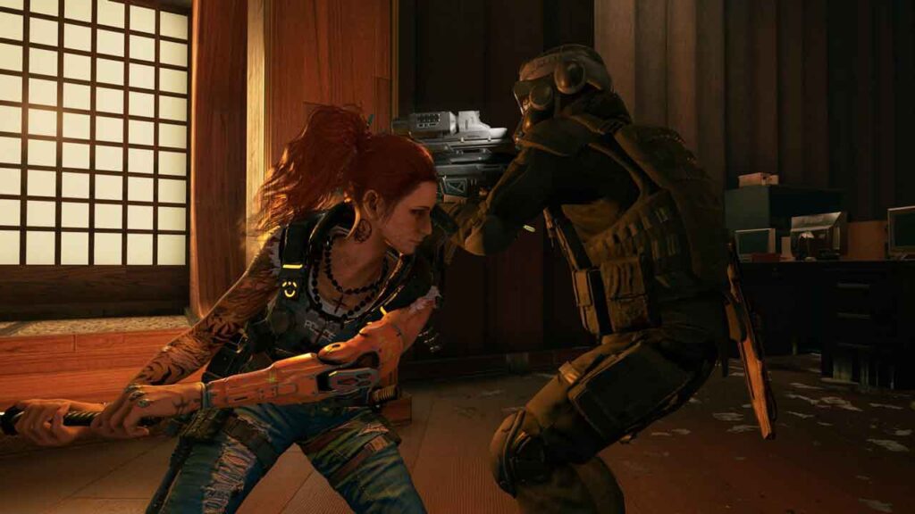 Mujurlah, permainan itu menebus cerita jerawatan dengan aksi buku jari putih yang dihantar terus kepada anda dengan keganasan tambahan. Seperti Devil’s Third, permainan ini cuba mencampur adukkan keadaan dengan aksi pantasnya. Dalam konteks ini, jika anda membayangkan bahawa anda menghadapi gabungan Ninja Gaiden dan Vanquish, anda berada di landasan yang betul. Masalah terbesar Devil’s Third ialah keseimbangannya yang lemah, lebih mengutamakan senjata berbanding pedang dalam hampir setiap senario. Memandangkan senjata itu tidak mempunyai kesan sama sekali, menggunakan pendekatan sedemikian adalah tidak bagus. Nasib baik, ini telah berubah dalam Wanted Dead kerana pedang adalah item yang paling berguna dalam senjata anda.